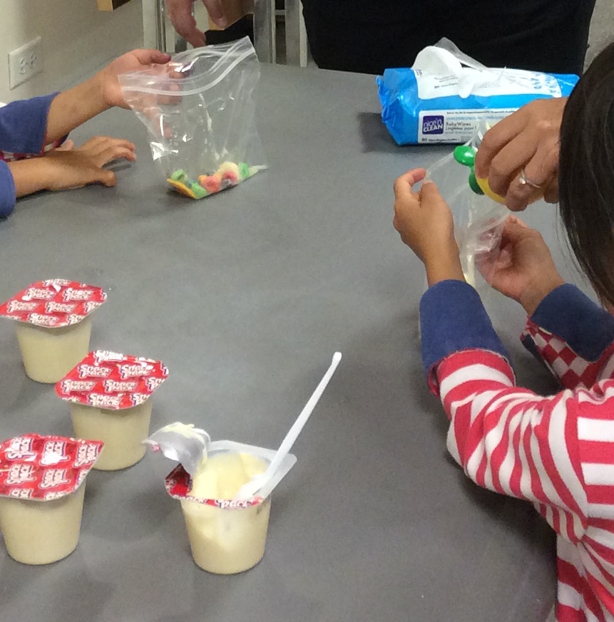 This great idea was featured on both the ALSC Blog by Amy Koester, as well as Abby the Librarian, and Library Bonanza. That’s how you know it’s great. We laid out all the parts on a table with a sign that instructed them to put it all together and mush it up, and told them that it’s kind of what it looks like inside their stomachs. Kids enjoyed it, parents were grossed out!