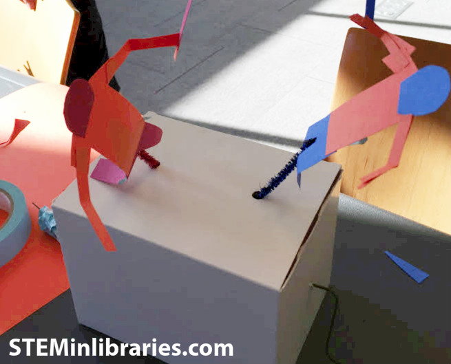 2. Demonstrate the two simple machines that will be built: the jumping machine, and the dual motion machine. Have participant identify what simple machine the models are based off of.